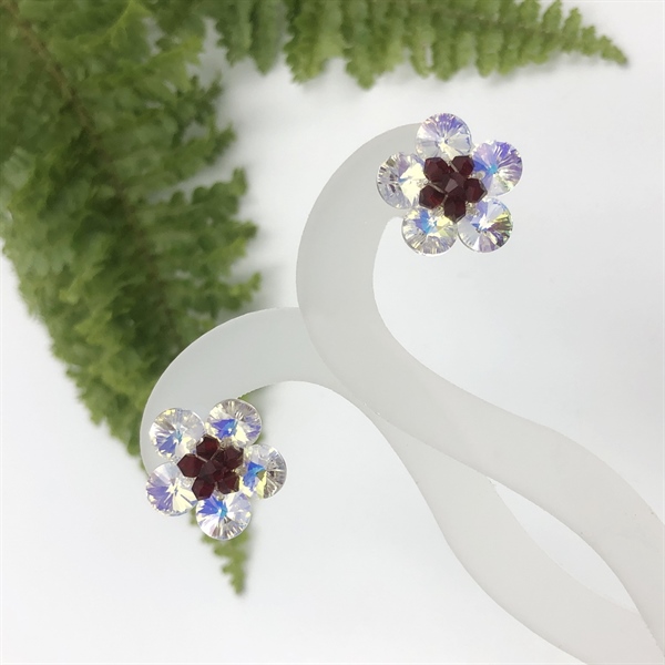 Hoa tai pha lê 6428M6 kết hình hoa mai nhụy cườm đỏ