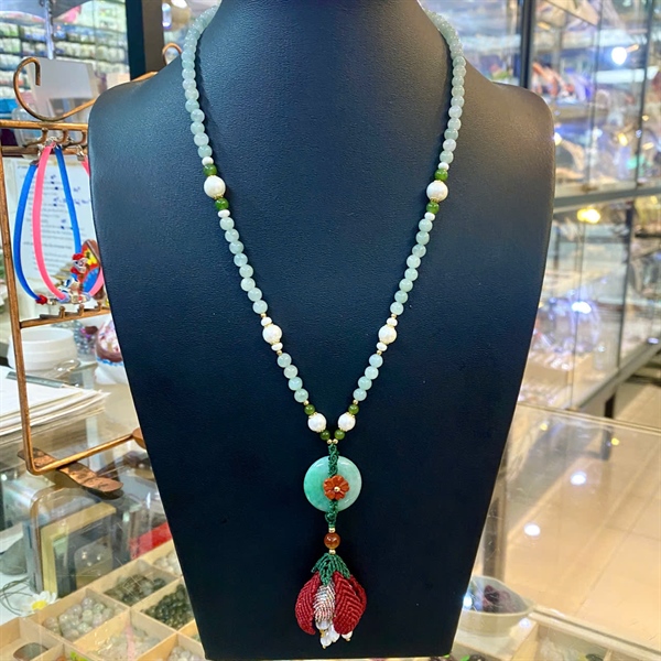 Vòng cổ DIY macrame đồng điếu cẩm thạch hoa Mộc lan