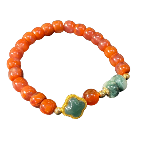 Vòng tay mã não thiên nhiên 7mm mix charm bạc/cẩm thạch - Cái