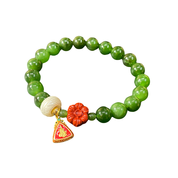 Vòng tay ngọc bích thiên nhiên 8mm mix chu sa, ngọc trai và charm bạc - Cái