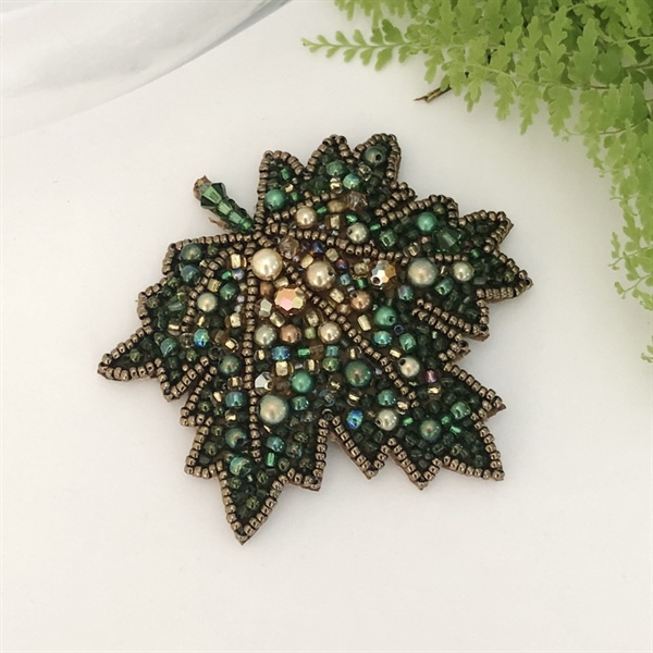 Cài áo ngọc trai mix pha lê và cườm hình lá phong