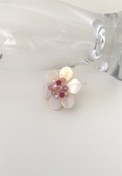 Cài áo pha lê mix cườm và vỏ ốc xà cừ kết hình hoa 6 cánh