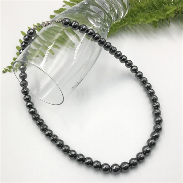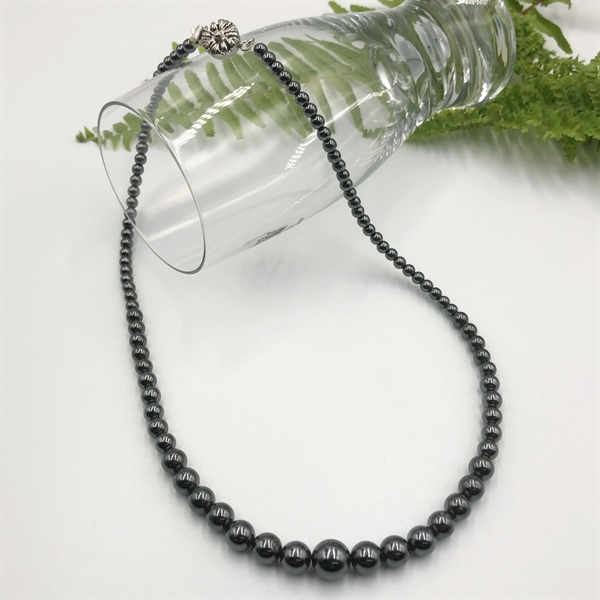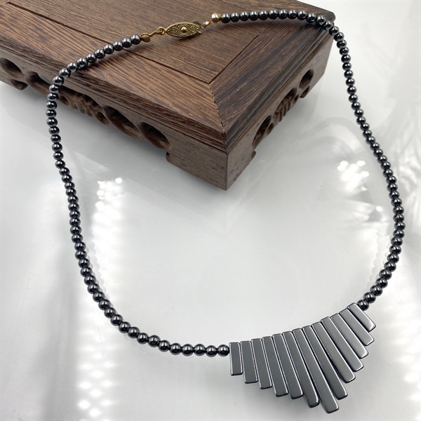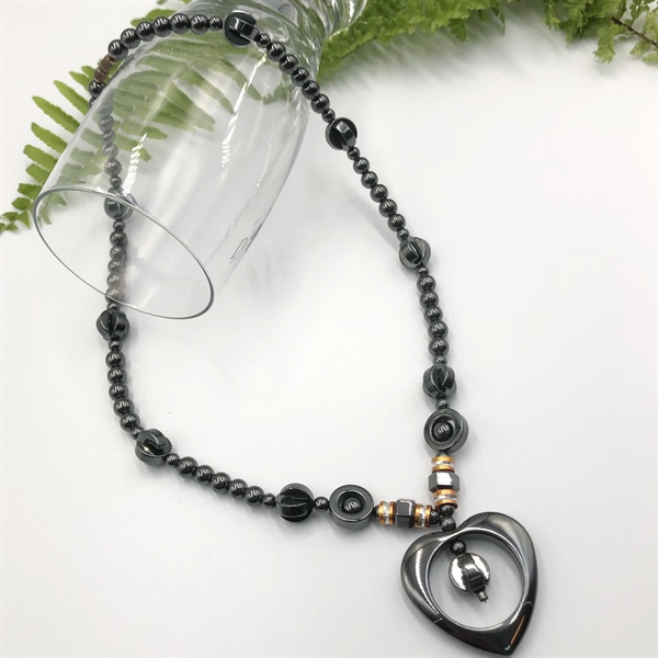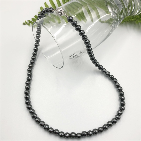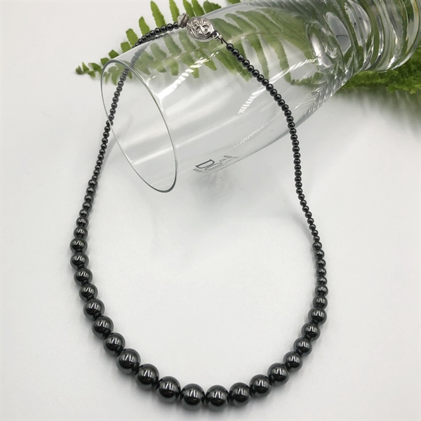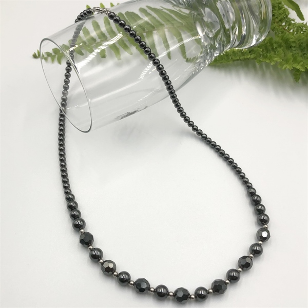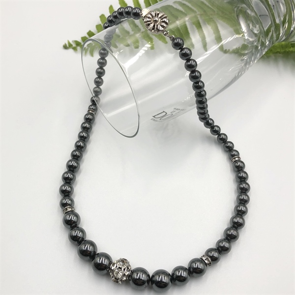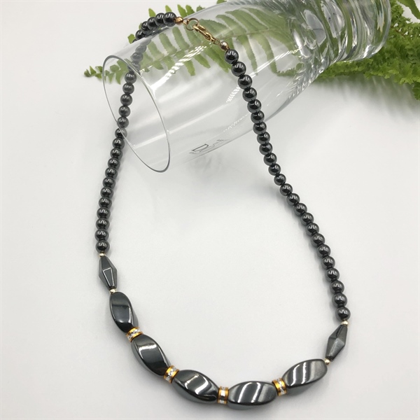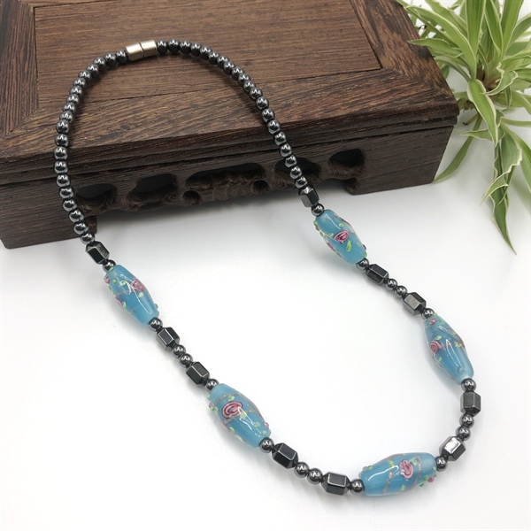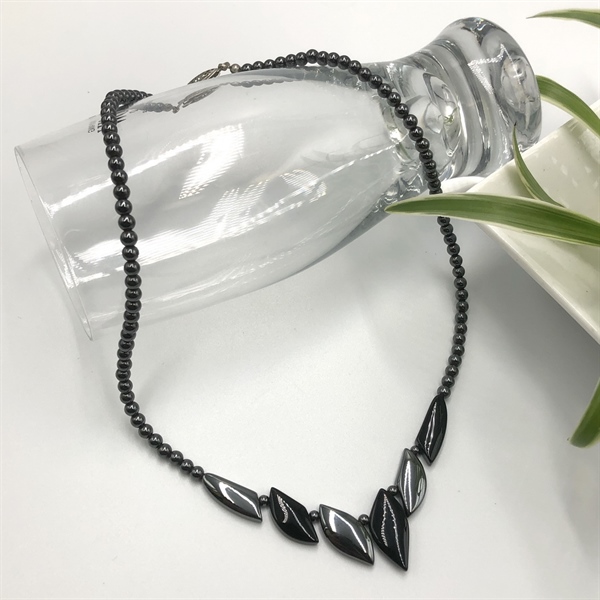 Vòng cổ Hematite mix hạt thủy tinh hoa xanh