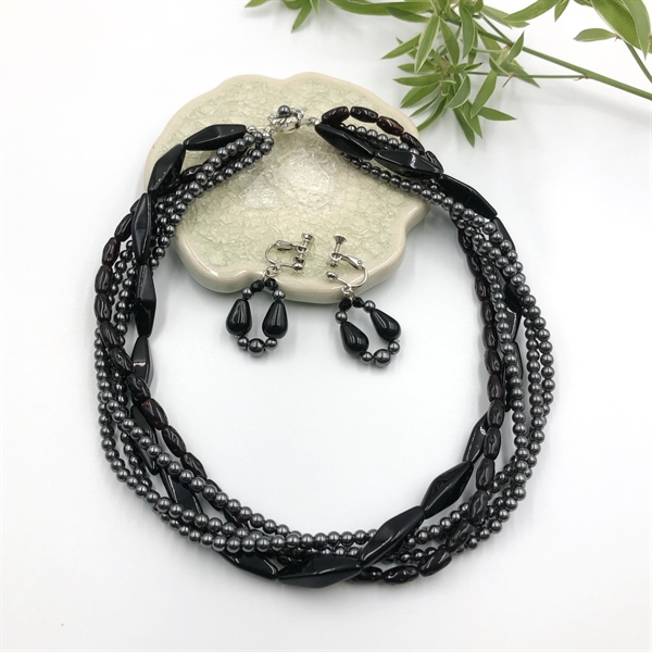 Vòng cổ Hematite (3 vòng) mix mã não đen