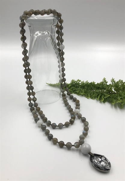 Chuỗi mala 108 đá thiên nhiên Labradorite mặt Phật Swarovski