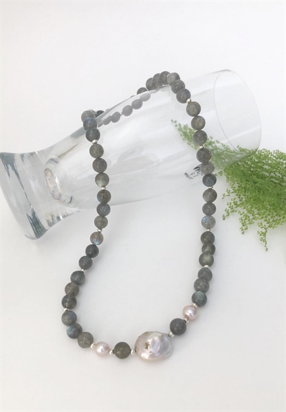 Vòng cổ đá Labradorite mix ngọc trai và cườm kim loại