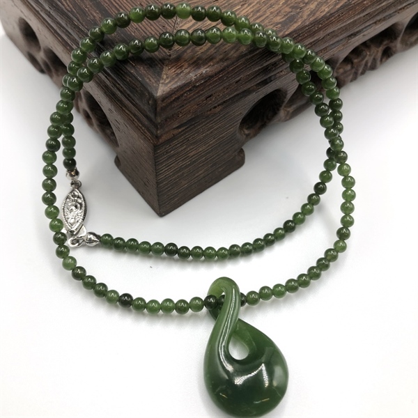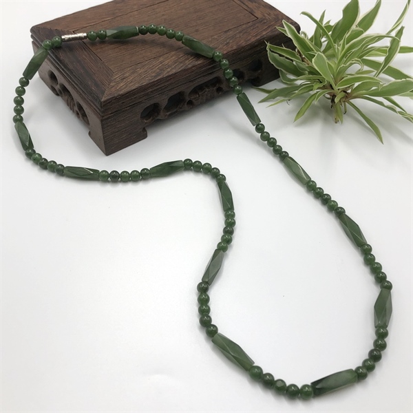 Vòng cổ ngọc bích thiên nhiên dài tròn và hạt giác dài
