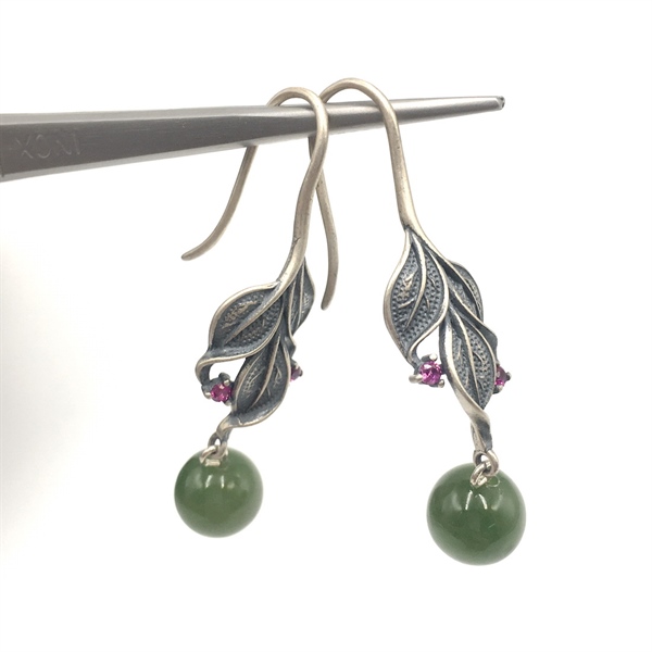 Hoa tai Ngọc Jade 6mm vàng 14GF EAJadeM6-GFLeaf