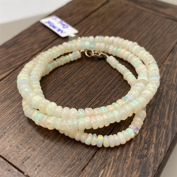 Vòng cổ Opal trắng bánh xe 3-5mm, khóa bạc 925